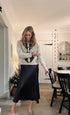 A gorgeous satin slip skirt that has an elasticated waist - easy to dress up or down. Paired with flats or trainers it's a versatile piece for your wardrobe.